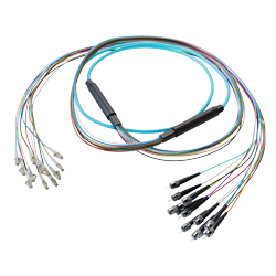 FJM3-BEAR-LCST-30 12-Fiber LC UPC to ST UPC, OM3 Multimode Distribution Cable, 6.2mm Riser, 2.0mm breakout, Aqua-30M