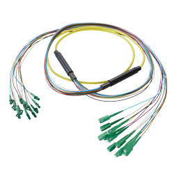 FJSM-BEYP-LCALCA-25 12-Fiber LC APC to LC APC, OS2 Single Mode Distribution Cable, 6.2mm Plenum, 2.0mm breakout, Yellow-25M