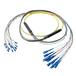 FJSM-BEYR-LCLC-15 12-Fiber LC UPC to LC UPC, OS2 Single Mode Distribution Cable, 6.2mm Riser, 2.0mm breakout, Yellow-15M