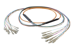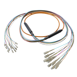 MAM1-B3OR-LCMM-1 MPO Fanout Cable, Method A, Multi Mode 62.5/125 OM1, 12 Lane 3.0mm Orange Riser (OFNR) MPO Male/LC, 1m