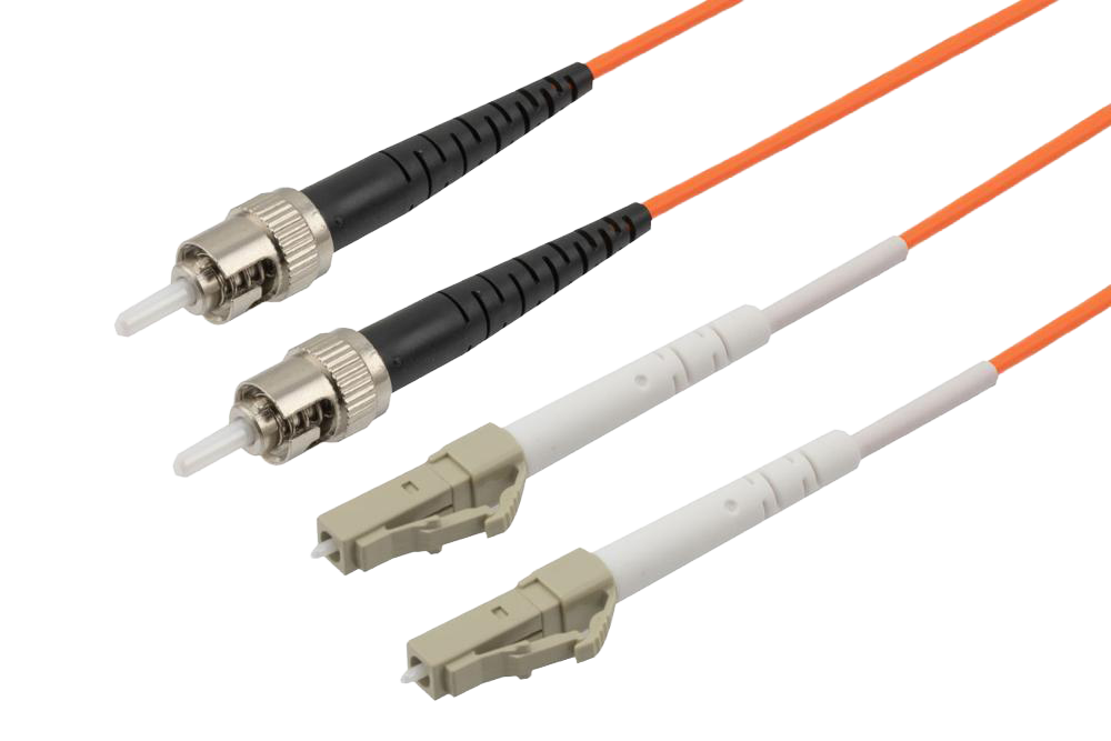 FSM1-D2OR-LCST-2 Fiber Jumper, Multi Mode 62.5/125 OM1, Duplex 2.0mm Orange Riser Rated PVC (OFNR) LC-UPC/ST-UPC, 2m