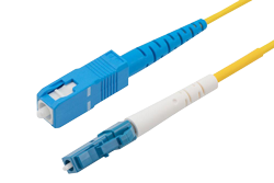 FJSM-S2YR-LCSC-1F Fiber Jumper G.657B (Bend Insensitive), Single Mode 9/125, Simplex 2.0mm Yellow Riser Rated PVC (OFNR), LC-UPC/SC-UPC, 0.3m