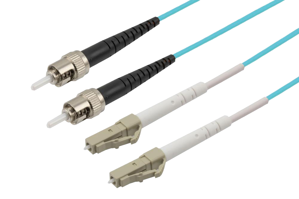 FJM4-D2AR-LCST-H Fiber Jumper (Bend Insensitive), Multi Mode 50/125 OM4 (Bend Insensitive), Duplex 2.0mm Aqua Riser Rated PVC (OFNR), LC-UPC/ST-UPC, 0.5m