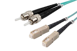 FJM4-D2AR-SCST-H Fiber Jumper (Bend Insensitive), Multi Mode 50/125 OM4 (Bend Insensitive), Duplex 2.0mm Aqua Riser Rated PVC (OFNR), SC-UPC/ST-UPC, 0.5m