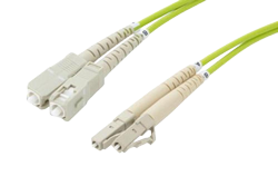 FJM5-D2LR-LCSC-10 Fiber Optic Patch Cable, Dual LC UPC to SC UPC, MM OM5, 2.0mm Riser, Lime Green-10M