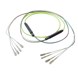 FJM5-Q4LP-SCST-15 4-Fiber SC UPC to ST UPC, OM5 Multimode Indoor Distribution Cable, 4.5mm Plenum, 2.0mm breakout, Lime Green-15M