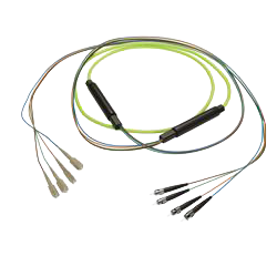 FJM5-Q4LP-SCST-30 4-Fiber SC UPC to ST UPC, OM5 Multimode Indoor Distribution Cable, 4.5mm Plenum, 2.0mm breakout, Lime Green-30M