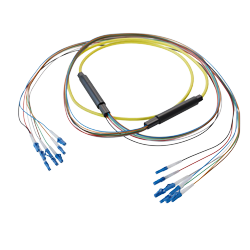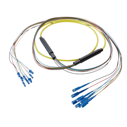 FJSM-BEYP-LCALCA-5 12-Fiber LC APC to LC APC, OS2 Single Mode Distribution Cable, 6.2mm Plenum, 2.0mm breakout, Yellow-5M