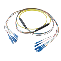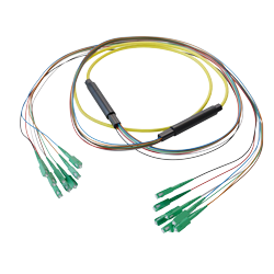 FJSM-BEYP-LCASCA-30 12-Fiber LC APC to SC APC, OS2 Single Mode Distribution Cable, 6.2mm Plenum, 2.0mm breakout, Yellow-30M