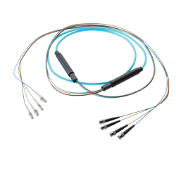 FJM3-Q4AP-LCST-10 4-Fiber LC UPC to ST UPC, OM3 Multimode Distribution Cable, 4.5mm Plenum, 2.0mm breakout, Aqua-10M