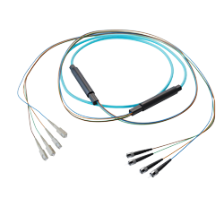 FJM3-Q4AR-SCST-30 4-Fiber SC UPC to ST UPC, OM3 Multimode Indoor Distribution Cable, 4.5mm Riser, 2.0mm breakout, Aqua-30M